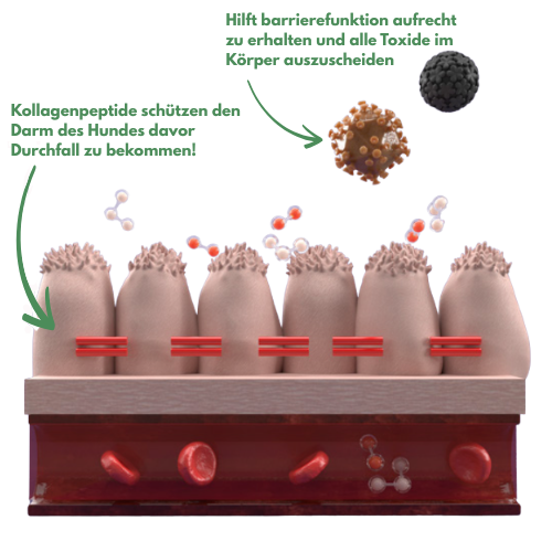 Peptide+ unterstützt die Hautgesundheit deines Hundes, weil die enthaltenen Kollagenpeptide nachweislich die Produktion von Kollagen und Elastin steigern. Das trägt zu mehr Feuchtigkeit und Hautstärke bei.